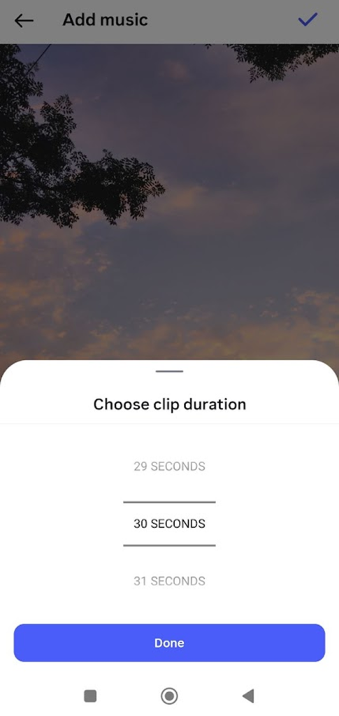 - Once you choose a song, you’ll be able to select the specific part of the track to feature. Instagram usually allows a snippet ranging from 5 to 90 seconds, depending on post type and audio rights.