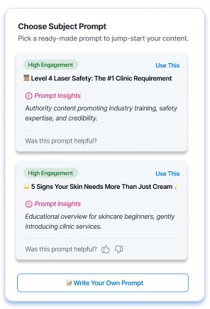 Our AI now suggests you effective prompts based on the insights you share about your business and branding.