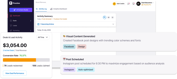 Practina already keeps your brand active across posts, reviews, ads, deals, and insights. Which is already great! But now you can take it even further.