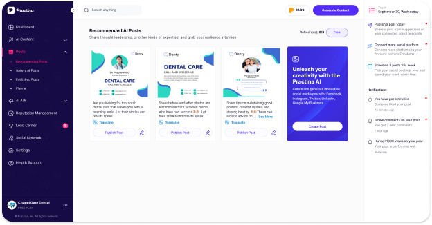 Marketing success hinges on adaptability. From content generation to scheduling and from running ads to reputation management, adapt every process by leveraging Practina's AI capabilities!
