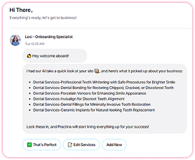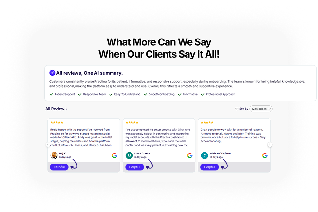 With the reimagined Practina, the dashboard now talks to you, capturing what we might have missed and updating your business info in real-time.