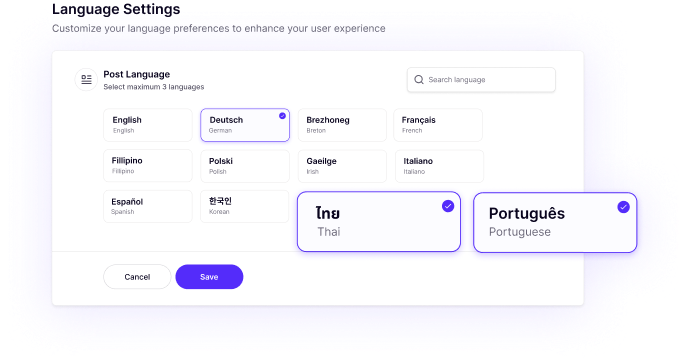 Edit, regenerate, or publish your caption in the language that best suits your target audience, all without needing external tools.