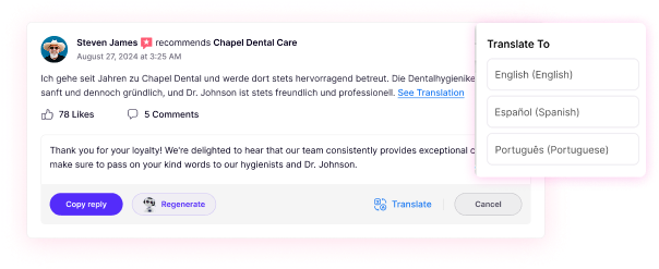 Translate reviews from Google, Facebook, Yelp, and more into your preferred languages